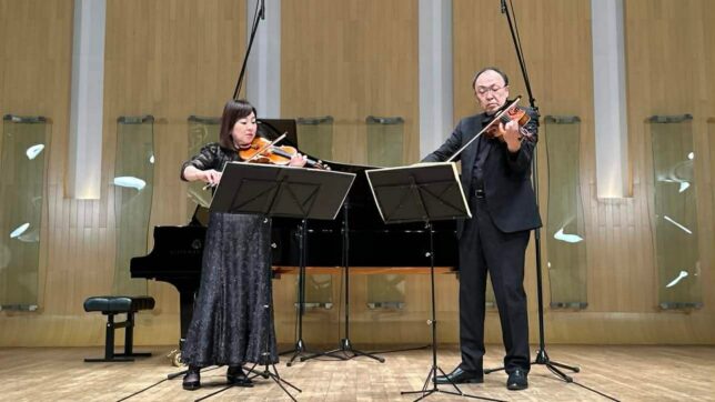 おふたりはモーツァルトのヴァイオリンとヴィオラのための二重奏。素敵です。