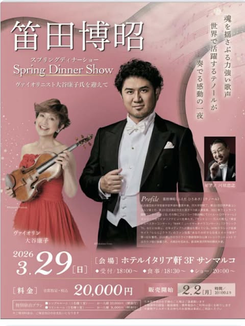 | 出演 | 大谷康子, violin 岡田奏, piano |