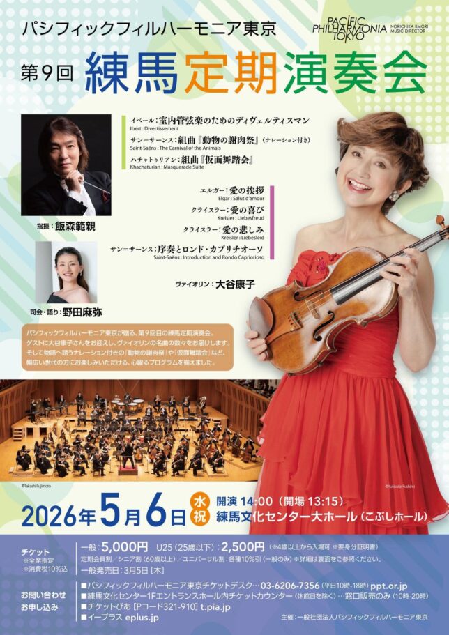 大谷康子, violin 飯森範親, conductor 野田麻弥, narrator パシフィックフィルハーモニア東京, orchestra |